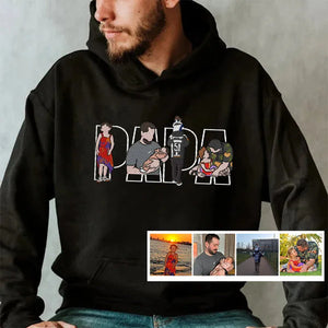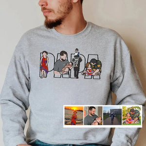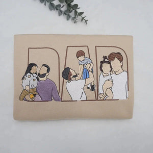 Celebrate the special bond between a father and his children with this custom embroidered sweatshirt. Featuring the word "DAD" filled with beautifully stitched illustrations based on your own family photos, this sweatshirt makes a heartfelt gift for Father's Day, birthdays, or any occasion.