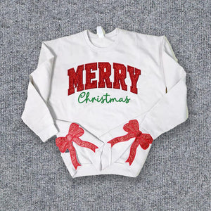 Personalized Green/Red Merry Christmas Bow Side Sweatshirt
