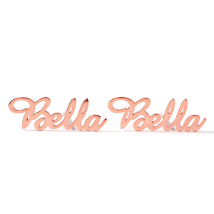 Make a statement with our Personalized Name Stud Earrings. Each pair is custom-made to reflect your unique style, allowing you to express your personality in a beautiful and meaningful way. These earrings are more than just accessories; they are a reflection of who you are.
