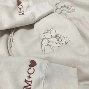 Personalized Photo Line Drawing Embroidered Hoodie