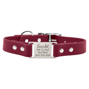 The collar boasts a ScruffTag slide-on name plate. It is built into the structure of the collar rather than dangling from it. This feature ensures that your dog will always have identifying information.