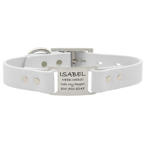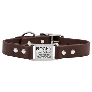 This waterproof dog collar is a dogIDs original design. The ScruffTag sits right on the back of the dog’s neck. That makes it easy for anyone to notice and read without having to handle your dog.
